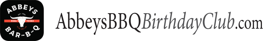 As a Birthday Club member you will receive an email on your birthday announcing a special surprise. Just present the email at Abbey's Real Texas BBQ to enjoy your birthday surprise.